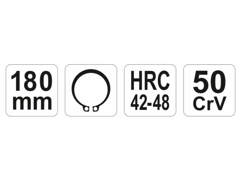 Külső, hajlított Seger fogó, 180mm hosszúságú, Seger zárógyűrűk behelyezésére és eltávolítására tervezve. precíziósan esztergált csúcsok, 50CrV acélból, 42-48HCR keménységgel polírozott, feketedett felület a nyél puha PVC sapkával van bevonva Használati figyelmeztetések: A kéziszerszámok használata veszélyes lehet! Mindig használjon személyi védőfelszerelést munkavégzés közben. Csak megfelelő, sérülésmentes szerszámokat használjon. Válassza ki a szerszám típusát és méretét a tervezett feladatnak megfelelően. Ne túlterhelje a szerszámokat. Tartsa a szerszámokat távol a gyermekektől. Használja óvatosan a szerszámokat.