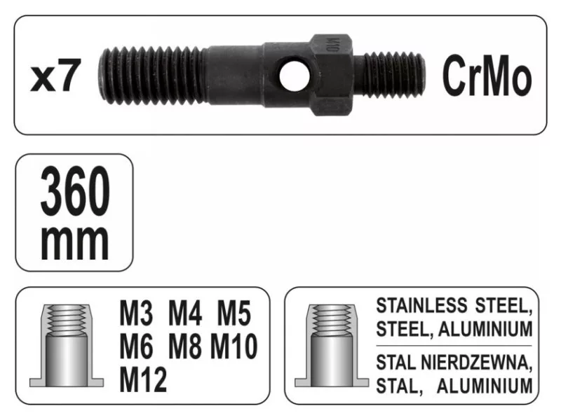 YATO Szegecsanyahúzó 360 mm M3, M4, M5, M6, M8, M10, M12