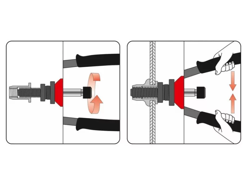 Kézi szegecselő Yato YT-36127 M3-M12 niter számára. A szegecselő anyagok összekötésére szolgál niterrel. Anyagokat köt össze belső menettel rendelkező hüvellyel. Ez lehetővé teszi további elemek csavarását fémszerelvényekkel vagy csavarokkal. Fejek méretekben: M3, M4, M5, M6, M8, M10, M12. Tartós CRMO króm-méter-méter szerszámacélból készült. A fogantyúk csúszásgátló gumi borítással vannak ellátva.