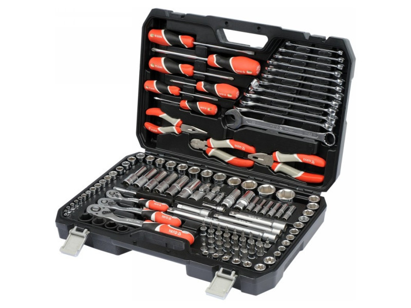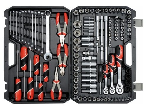 A Yato eszközkészlet 129 darabból áll, melyek egy praktikus műanyag dobozban vannak elhelyezve. Az eszközök megbízható anyagokból készültek, pontosságuk garantált.