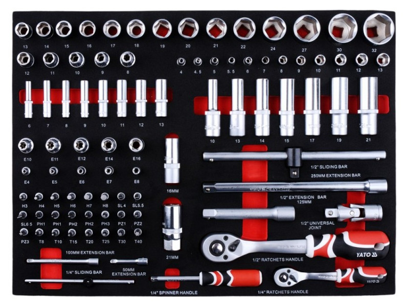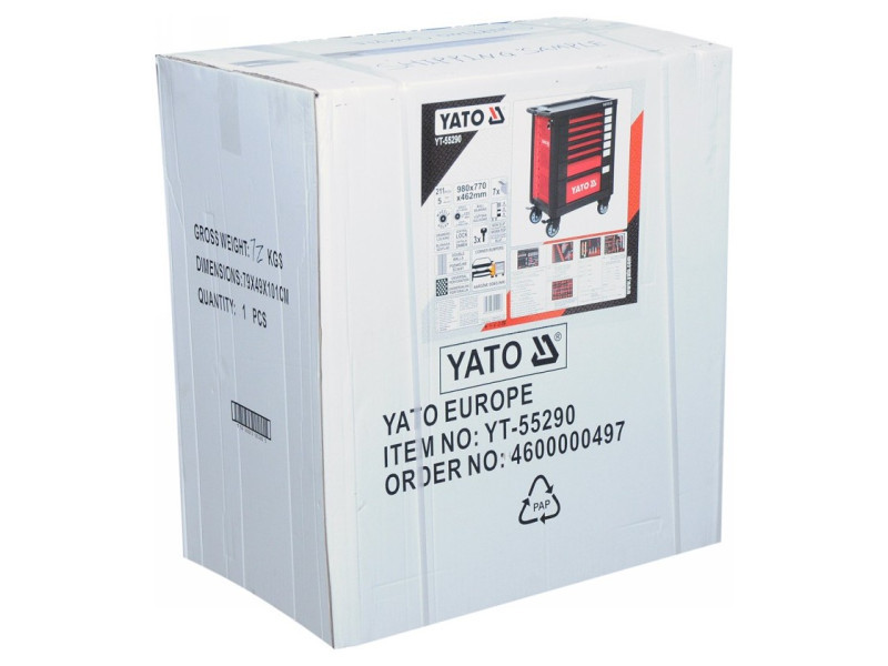 YT-55290 YATO márkájú szerszámszekrény (szerszámkocsi) a következőkkel van felszerelve: