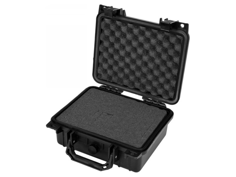Hermetikus, vízálló és porálló doboz, amely ellenáll sokféle vegyi anyagnak és a korróziónak. A rugalmas polipropilénból készült, az IP55 ellenállósági osztály szerint.Egy hatékony tömítési rendszert alkalmaz, amelyet egy nyomáskiegyenlítő szeleppel gazdagítottak a légiközlekedés során. Zárral zárható.A bőrönd belső terét előre kivágott szivaccsal töltötték meg, amelyet az adott termékek, például szerszámok, fényképezőgépek vagy mérőeszközök mélyedéseinek önálló modellezésére készítettek elő.A dobozok kiválóan alkalmasak használatra mint vízálló és sérülésálló szállítókonténerek, pl. vitorlázásban, terepmotorozásban stb. A megadott méretek a teljes külső méretek.falvastagság kb. 10 mmbelső méretek: 18 x 24 x 7 cm A bőröndök kiválóan alkalmasak lég- és sérülésálló szállítókonténereknek, pl. vitorlázásban, terepmotorozásban stb. A konténer megnyitása után eltávolítandók az előre kivágott szivacsdarabok, a mélyedések kialakítása a tárgyak formáihoz, amelyeket benne tárolnak, például fényképezőgépek, mérőberendezések stb.
