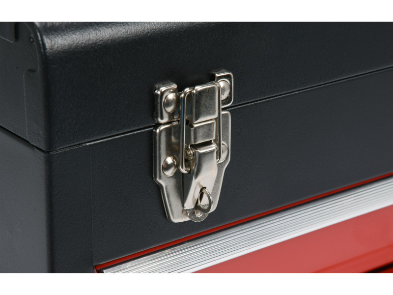 YATO műhelyeszközök tárolására szolgáló szerszámosláda, melyben fiókok találhatóak, amelyek fémgörgős kisiklásgátlókon futnak. Rendelkeznek továbbá további tárolórésszel a tetején, melyet fémkapcsokkal lehet lezárni.lehetőség a tartalom biztosítására a logó rögzítésével a kapcsokon.li>központi fiókzár mely a doboz fedelének lezárásával aktiválódikcsúszásgátlós fogantyú