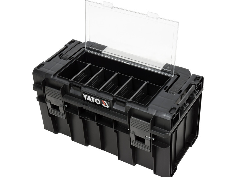Az ergonomikus, zárható doboz lehetővé teszi a szerszámok és kisebb tárgyak kényelmes tárolását és szállítását. 2-3 darab is egyszerre összekapcsolható és szállítható (rakás), valamint a YT-09162 vagy YT-09166 rendszer dobozkészlet részévé is válhat. Ideális szakembereknek és barkácsolóknak.