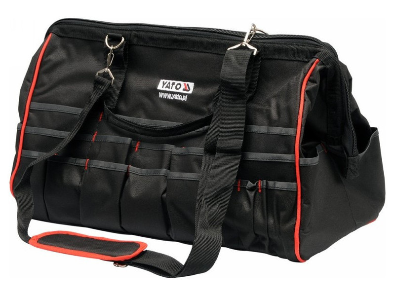 Praktikus YATO márkájú szerszámtáska, erősített nylonból készült, fémcsattal megerősítve, könnyű nyitás és zárás érdekében. A praktikus és könnyen működő cipzár, valamint a számos zseb és rekesz a táska ideális mobil szervizműhelyhez, otthonhoz, kertbe.