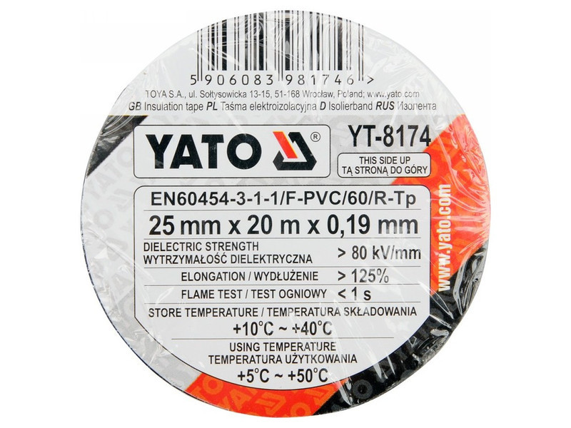 YATO Szigetelőszalag 25 x 0,19 mm x 20 m fekete