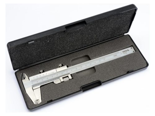 Rozsdamentes acél 150 mm-es tolómérő   mérési tartomány 0 - 150 mm között pontosság 0,02 mm / 0,001 hüvelykig .a tiszta és jól olvasható beosztás befolyásolja a pontosságot és az értékek leolvasásának könnyedségét tartós és kézreálló csomagolás páratartalom hatása: elhanyagolható 80% relatív páratartalom alatt A tolómérő rendelkezik: mérőfelületek külső mérésekhez mérőfelületek belső mérésekhez mélységmérő Mélységmérő. li>mérőfelületek ütemméréshez útmutató fő skála neonius beállítócsavar   Lehetővé teszi a külső, belső, magassági és mélységi mérések elvégzését. A tolómérő tokban van csomagolva.
