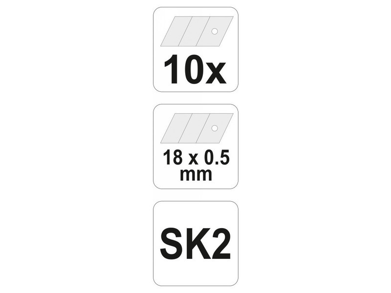 Törött pengék 18 mm-es Yato késekhez. SK2 acélból készült pengék 10 darab a csomagban Használati figyelmeztetések: Figyelem! Mindig használjon személyes védőfelszerelést a munka során.