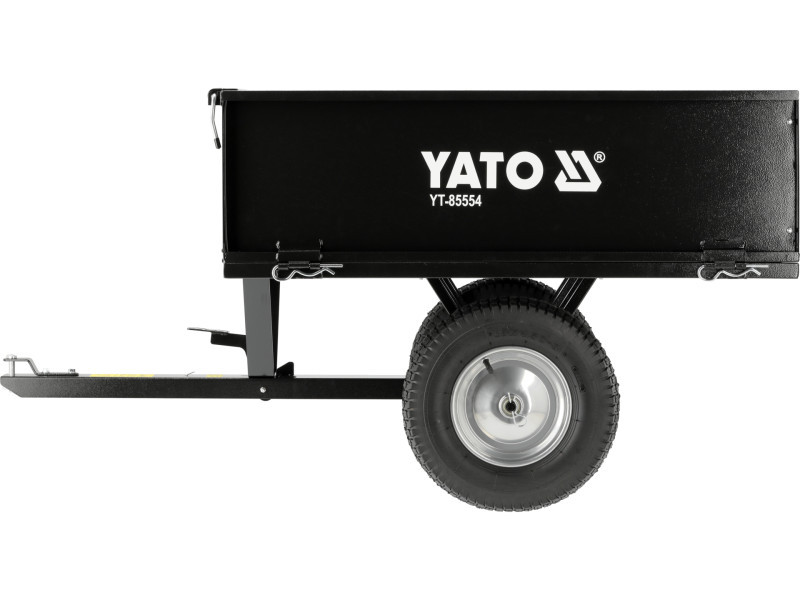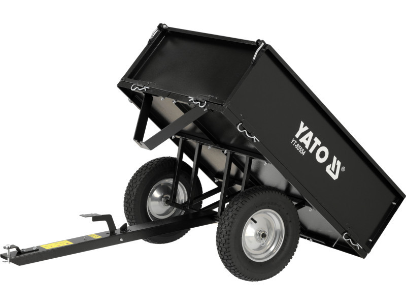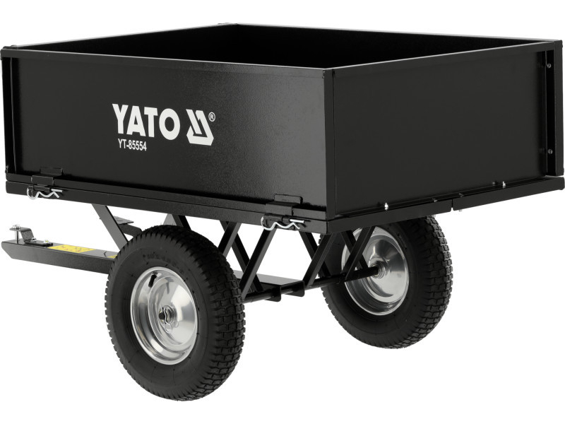 Professzionális kerti traktor utánfutó 225 kg teherbírással. Rendelkezik leeresztő funkcióval és eltávolítható hátsó oldallal. A traktor a hátsó részre szerelhető. az alábbi traktorokhoz tervezték: YT-85550, YT-85551, YT-85552 max. teherbírás: 225 kg fém konstrukció a kerekek mérete: 15" doboz méretei: 97 × 71.5 × 34 cm