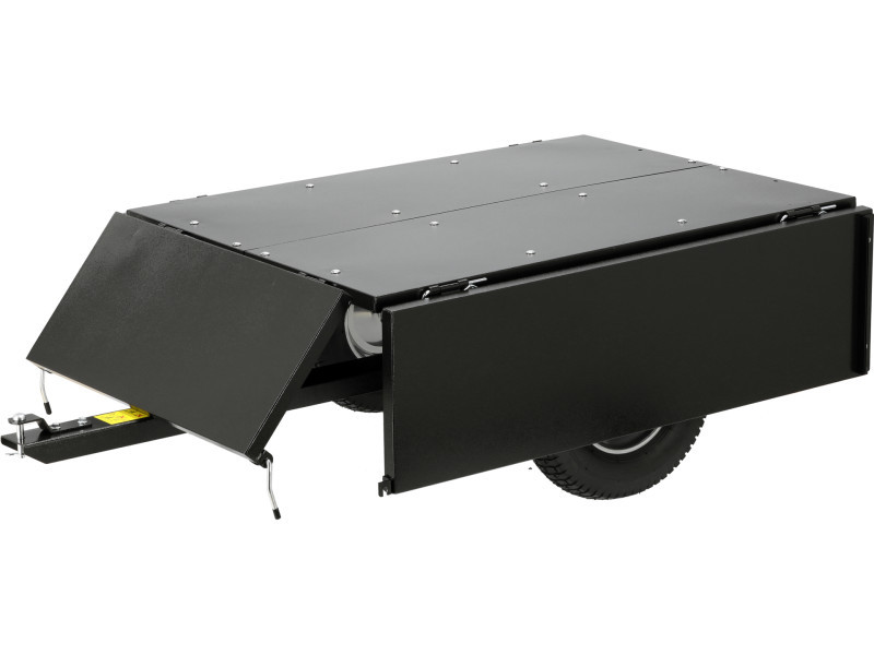 Professzionális kerti traktor utánfutó 225 kg teherbírással. Rendelkezik leeresztő funkcióval és eltávolítható hátsó oldallal. A traktor a hátsó részre szerelhető.