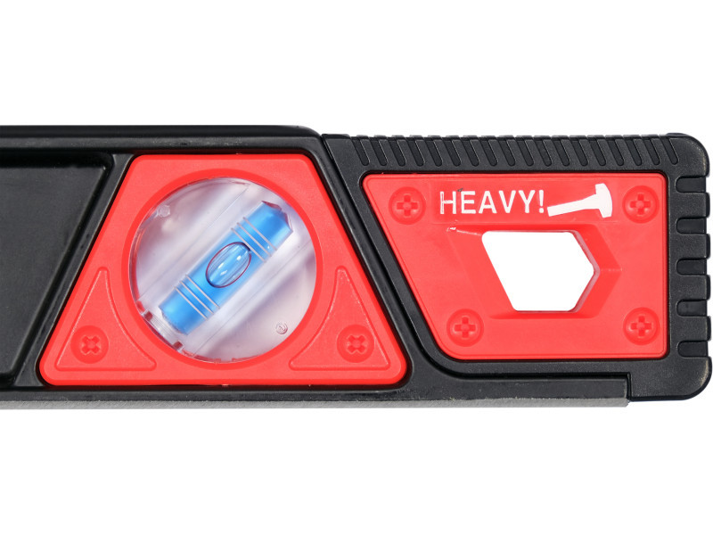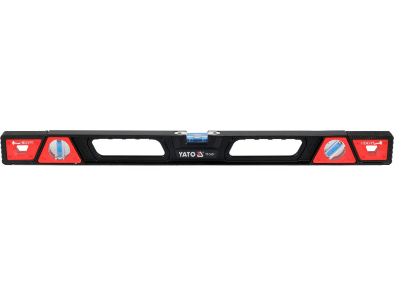 Robosztus, ütésálló alumínium szintező. A két nagy fogantyú segítségével könnyedén elvégezhetőek a mérések. A szintező végét rugalmas, ütésálló puferek védelmezik, lehetővé téve a kalapáccsal való ütögetést. A szintező három buborékkal rendelkezik: függőleges, vízszintes, 45 fokos. Az esztergált alapon 5 mágnes található.