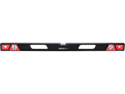 Robusztus, ütésálló alumínium lézer szintező. Két nagy fogantyú teszi könnyűvé a mérések végzését. A szintező végét rugalmas ütésálló ütközők védelmezik, lehetővé téve a kalapáccsal való ütést. A szintező három buborékkal van felszerelve: függőleges, vízszintes, 45 fokos. Az esztergált alapon 5 mágnes található.  buborék pontosság: 0,5 mm/m = 0,027° centiméter beosztásokkal jelölt alap felület: porfestékkel bevont