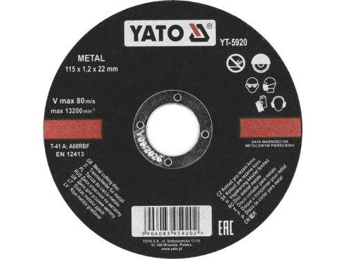 YATO Vágókorong fémre 115 x 1,2 x 22 mm
