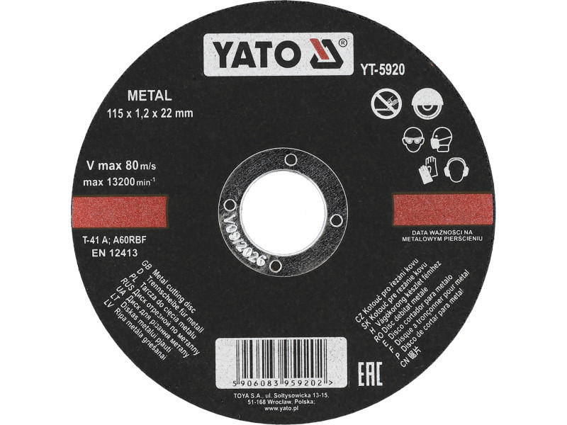 Vágókorongok fémvágáshoz a YATO márkától, kiváló minőségű, megfelelő keménységű és szemcseméretű csiszolóanyagból készülnek.