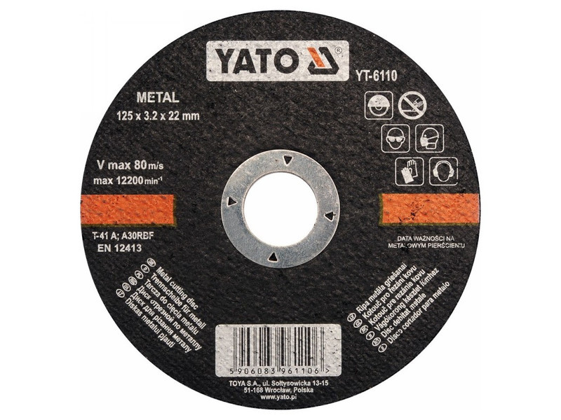 Fémvágó korongok a YATO márkától, kiváló minőségű, megfelelő keménységű és szemcseméretű csiszolóanyagból készültek. a korongok gyantakötésűek, üvegszállal megerősítve (RBF jelzés) Ipari és kézműves felhasználásra tervezve. Ipari és kézműves felhasználásra tervezve.
