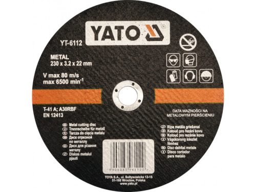 Fémvágó korong a YATO márkától, magas minőségű, megfelelő keménységű és szemcseméretű csiszolóanyagból készült.