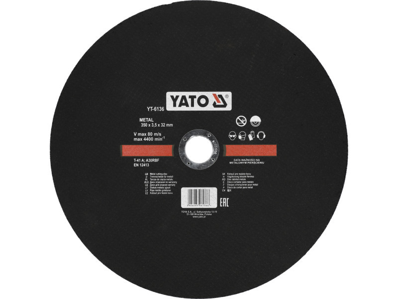 Fémvágó korong a YATO márkától, kiváló minőségű abrazív anyagból készült, megfelelő keménységgel és szemcsemérettel. a korong gyantakötésű, üvegszállal erősített (RBF szimbólum) Professzionális ipari és kézműipari felhasználásra tervezve. A korongot professzionális ipari és kézműipari felhasználásra tervezték.