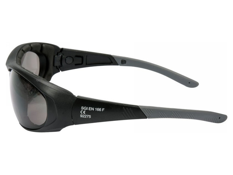 Védőszemüveg YT-73765 színezett kivitelben, csatlakoztatható szíjjal, melyek kézi és mechanikai munkák, például csiszolás, fúrás stb. során védenek a szem sérülése ellen. Jól használhatóak például biciklizés közben, vagy túrázás során.optikai osztály: 1 - legmagasabb minőségű kilátás, folyamatos működésre ajánlottnapfény ellen védő szűrő: jelölés 5-3.1pára elleni védelem: Nlencse anyaga: polikarbonátkeret anyaga: nylonpanoráma üvegformaaz oldalán szigeteléssel ellátott keret, melyet kellemes tapintású EVA anyagból készítettekleválasztható szemüvegszárak a keretről, helyettük állítható rugalmas támogató szíjat erősítünk, ezzel a szemüveget védőszemüveggé alakítjuk átA szemüveg F szintű mechanikai szilárdságú, vagyis képes ellenállni egy 6mm átmérőjű, 0.86g súlyú és 45m/s sebességű acélszemcsének. Megfelelnek az EN 166 és EN 172 előírásoknak.