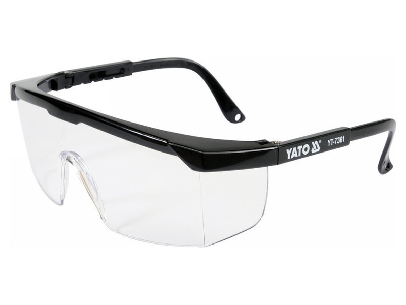 Védőszemüveg YT-7361 népszerű tervezéssel, melyet kézi és gépi munkavégzés során, mint például csiszolás, fúrás, vésés, stb. a szem védelmére terveztek.