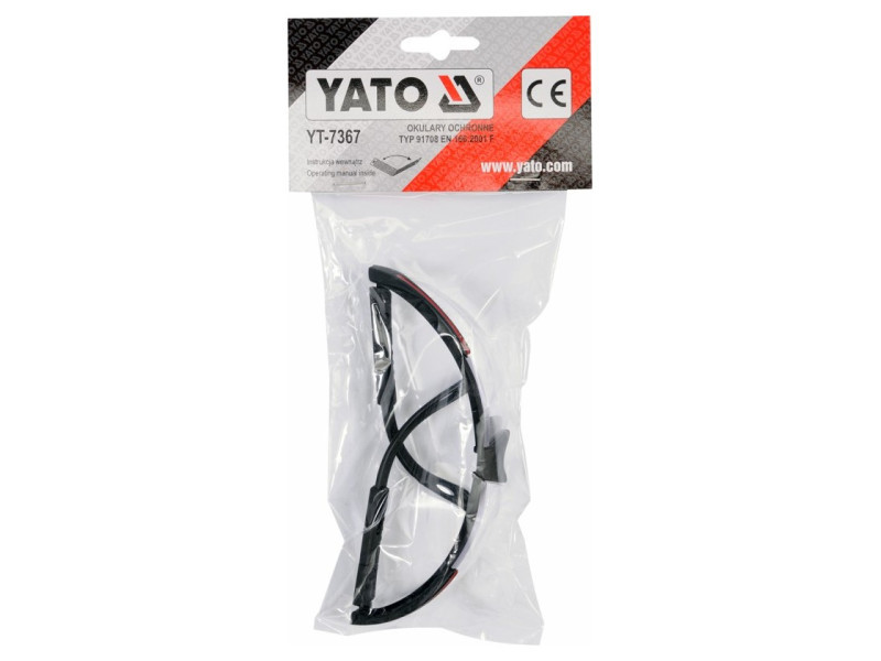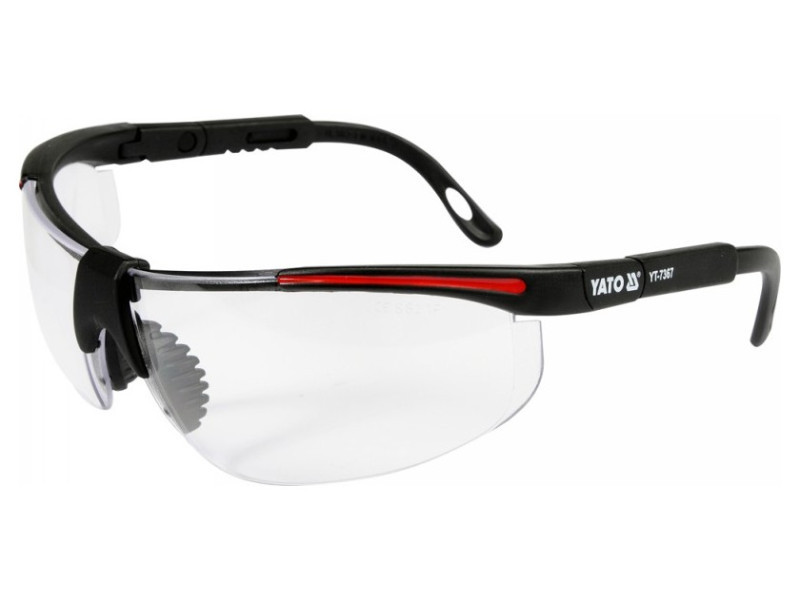 Védőszemüveg YT-7367 modern dizájnnal, mely manuális és gépi munkák, mint például csiszolás, fúrás, vésés stb. során nyújt védelmet a szemeknek.