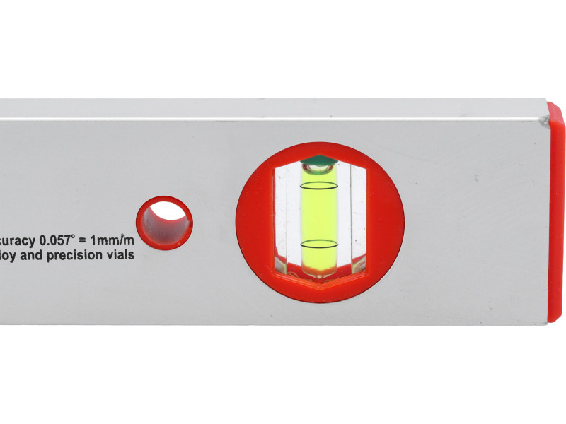 Alumínium szintező, 3 libella 600 mm   ütés- és sérülésálló test 1,5 mm vastag alumínium profilból készült precíz, tartós libellaülések és a test merevsége. A test merevsége garantálja a szintező jelzéseinek nagy pontosságát és ismételhetőségét védővégződések, melyek megóvják a szintezőt a sérülésektől, magas ütésállóságú műanyagból készültek   Pontos mérésekhez építési és befejező munkálatok során.