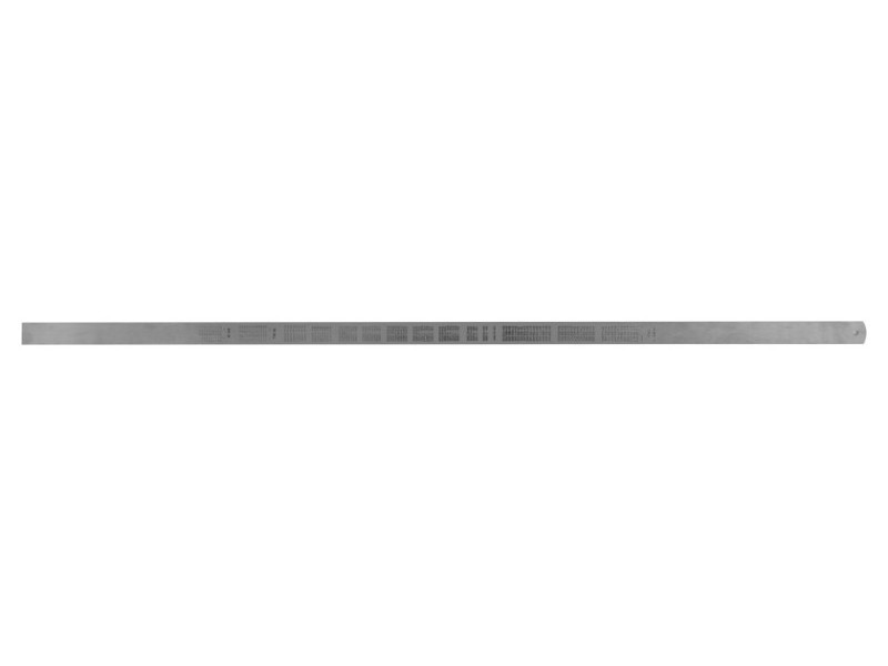 II. osztályú pontosságú rugalmas vonalzó. Rozsdamentes acélból készült. Mindkét szélén állandóan alkalmazott milliméteres skála. Szélessége 28 mm, teljes hossza 1029 mm, vastagsága 1,3 mm, a hátoldalán menetértékek átváltó táblázatai. Precíz mérésekhez és jelöléshez lakatos-, mechanikai-, dekoratív munkákban, stb.