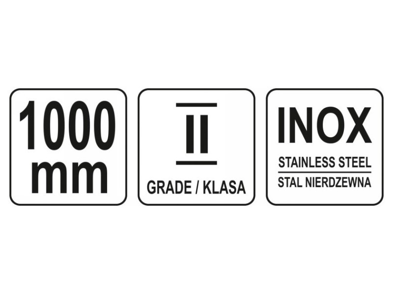 II. osztályú pontosságú rugalmas vonalzó. Rozsdamentes acélból készült. Mindkét szélén állandóan alkalmazott milliméteres skála. Szélessége 28 mm, teljes hossza 1029 mm, vastagsága 1,3 mm, a hátoldalán menetértékek átváltó táblázatai. Precíz mérésekhez és jelöléshez lakatos-, mechanikai-, dekoratív munkákban, stb.Rozsdamentes acél mérővonalzó 1000 mm  Rugalmas vonalzó II. osztályú pontosság Rozsdamentes acélból készült mindkét szélén állandóan alkalmazott milliméteres skálaszélessége 28 mm teljes hossza 1029 mm. vastagsága 1.3 mm a hátoldalán menetértékek átváltó táblázatai.   Precíz mérésekhez és jelöléshez lakatos-, mechanikai-, dekoratív munkákban, stb.