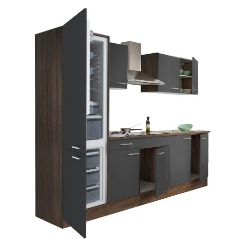 Yorki 270 konyhabútor yorki tölgy korpusz,selyemfényű antracit fronttal alulfagyasztós hűtős szekrénnyel