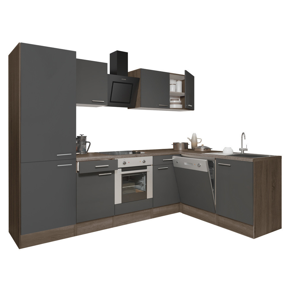 Yorki 280 sarok konyhabútor yorki tölgy korpusz,selyemfényű antracit front alsó sütős elemmel polcos szekrénnyel