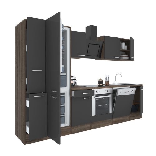 Yorki 310 konyhabútor yorki tölgy korpusz,selyemfényű antracit front alsó sütős elemmel alulfagyasztós hűtős szekrénnyel