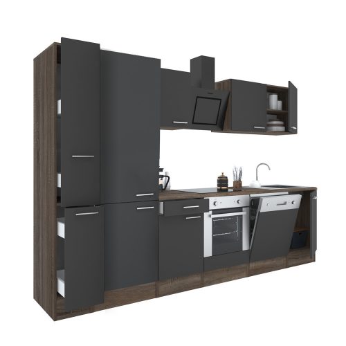 Yorki 310 konyhabútor yorki tölgy korpusz,selyemfényű antracit front alsó sütős elemmel polcos szekrénnyel