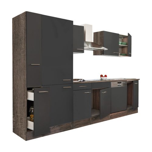 Yorki 310 konyhabútor yorki tölgy korpusz,selyemfényű antracit fronttal polcos szekrénnyel