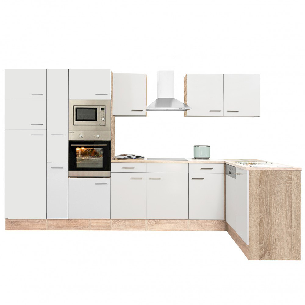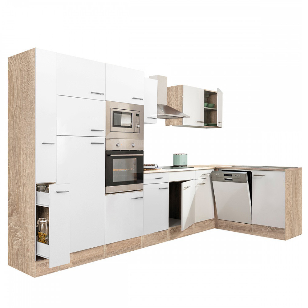 Yorki 370 sarok konyhablokk sonoma tölgy korpusz,selyemfényű fehér fronttal. A tökéletes konyha megteremtője!