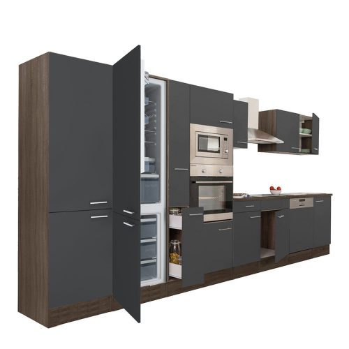 Yorki 420 konyhabútor yorki tölgy korpusz,selyemfényű antracit fronttal alulfagyasztós hűtős szekrénnyel