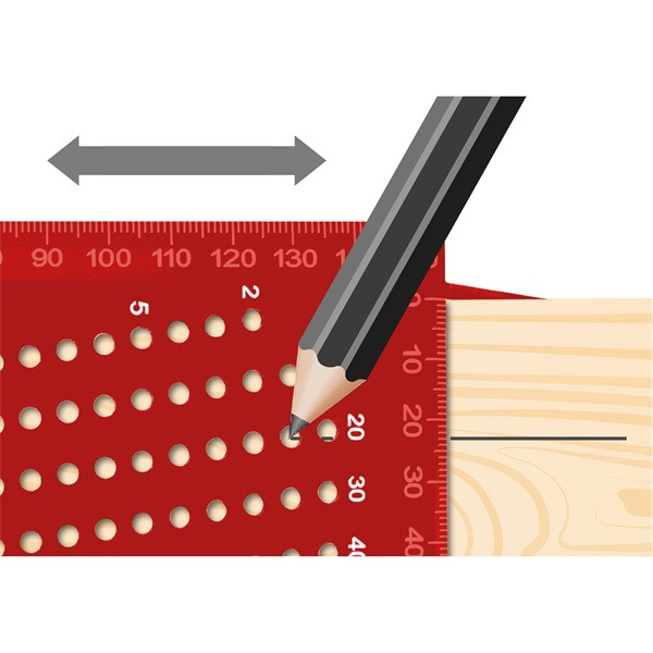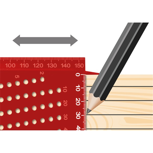 két befogó oldalon mm beosztás, az átfogó oldalon 0-90° ferde beosztás szögméréshez: 5-15-25-35-45-55-65-75°