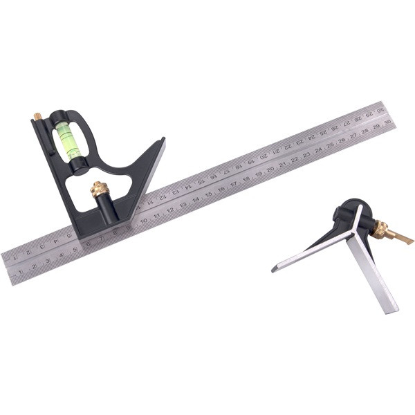 asztalos kombinált derékszög/vízmérték/vonalzó, többfunkciós, 300 mm, ALU/Inox, mm beosztás, 0°-45°-90° beosztás