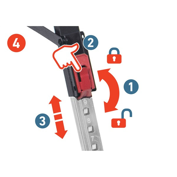asztalosbak/fűrészbak állítható, összecsukható; 600 - 850 mm, max. terhelés: 550 kg, saját tömeg: 7,9 kg