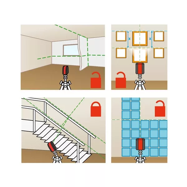automatikus lézeres vízszintező, ZÖLD, 1H1V (1 horizontális+1 vertikális) pontosság:0,3mm/1m, 1/4" menetes