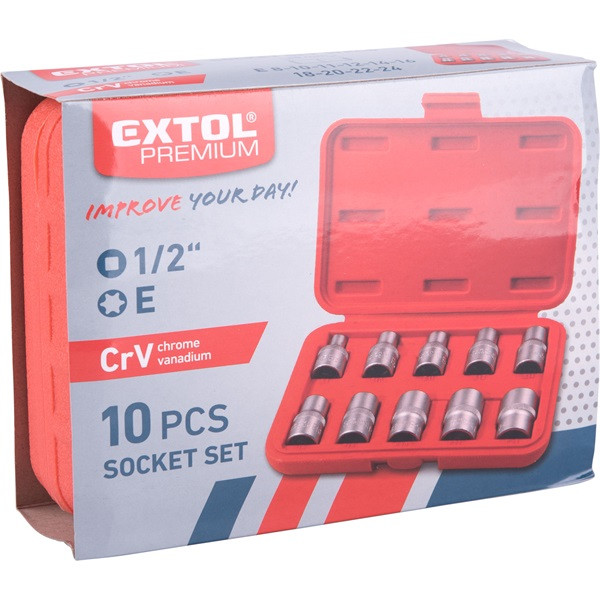 bitdugófej klt. belső, 10db, TORX, 1/2"×38mm (E8-10-11-12-14-16-18-20-22-24), CrV/S2