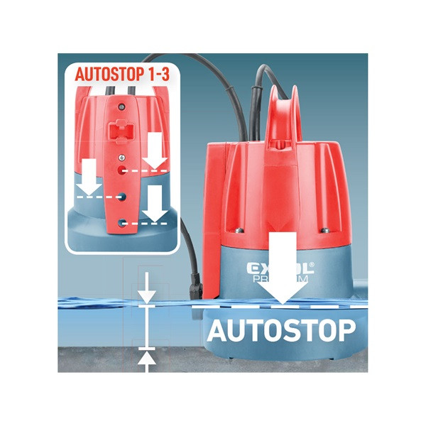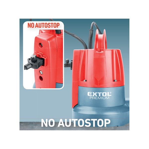 Az Extol® Premium 8895014 elektromos búvárszivattyúval tiszta vizet lehet szivattyúzni, a víz nem tartalmazhat mechanikus szennyeződéseket (pl. üledéket, iszapot, homokot, kavicsot stb.). A szivattyú kivitele lehetővé teszi, hogy a vizet (az érzékelő fenékre való helyezésével) teljes mértékben ki lehet szivattyúzni, (ilyenkor a min. maradék vízmennyiség: 5 mm). Hőkapcsolós védelemmel ellátva: víz nélküli futás esetén a szivattyú 3 perc múlva automatikusan kikapcsol.