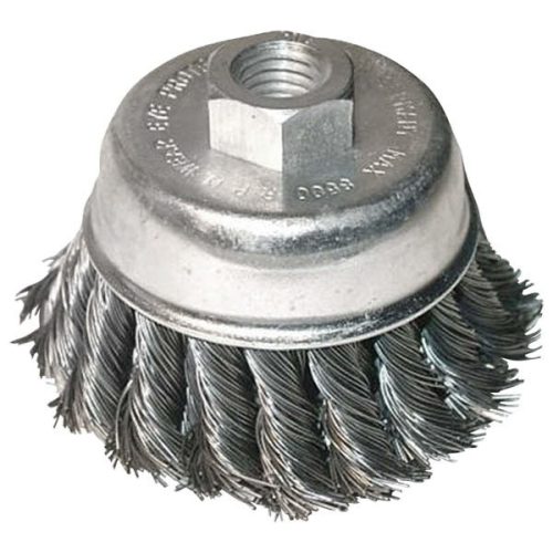 drótcsiszoló fazékkefe sodort szálú ; sarokcsiszolóhoz, M14×2 két soros, 80mm, max. 12500 ford/perc