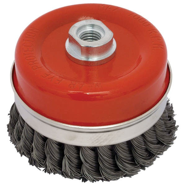 drótcsiszoló fazékkefe sodrott erős; sarokcsiszolóhoz, M14×2, 100mm, max. 7000 ford/perc
