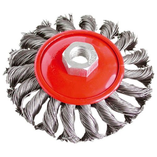 drótcsiszoló körkefe (sarokcsiszolóra) ; M14, sodrott erős, 100mm, kúpos, max. 11000 ford/perc
