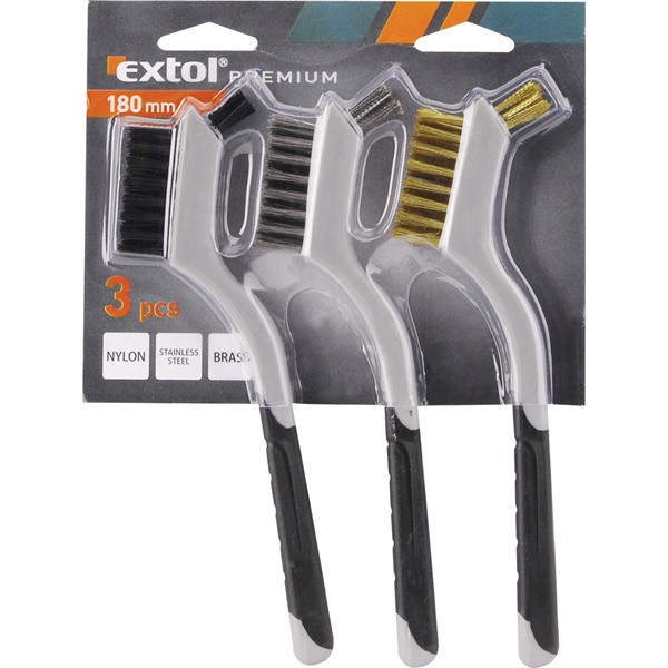 drótkefe klt., 3 db: nylon-, réz- és rozsdamentes acél szál, 3×8 sor, 180mm, kétkomponensű TPR+PP puha műanyag nyél