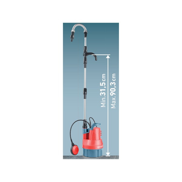 Az Extol® Premium 8895015 nagy teljesítményű, hordóban is használható kerti szivattyú, a szivattyú maximális teljesítménye 5000 l/óra, a nyomási magasság max. 11 m, a szívási mélység max. 7 m. A szivattyút kertek öntözéséhez lehet használni, a szivattyúval esővíz gyűjtő edényekből közvetlenül lehet a vizet kiszivattyúzni és a nyomótömlővel az öntözés helyére juttatni.