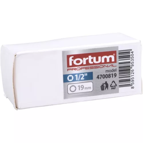 gépi (impakt) dugófej 1/2", 19 mm; vékonyfalú, ALU felnihez FORTUM