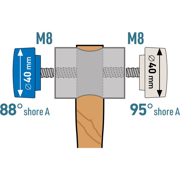 gumikalapács (illesztő kalapács) fa nyéllel, cserélhető gumi fejek; 40 mm, 32 cm