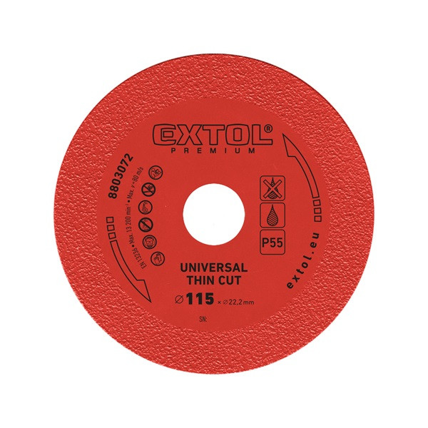 gyémántvágó, extra vékony vágás: 1,2mm vastagság; 115×22,2mm, száraz és vizes vágásra