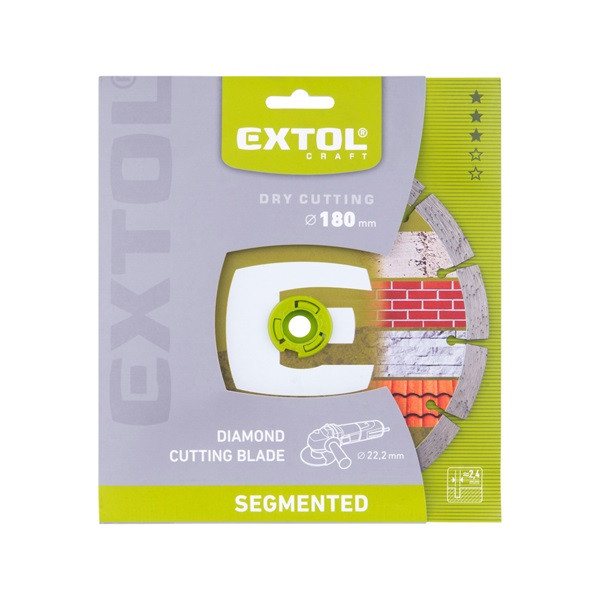 A kiváló minőségű gyémántvágó korongok nagy teljesítményű szerszámok melyek alkalmazásuk során nagy igénybevételnek vannak kitéve, alkalmasak félprofesszionális és otthoni, barkács jellegű felhasználásra. Az Extol Craft gyémántvágó korongok megbízható, általános felhasználású vágószerszámok, melyek megfelelő biztonságot garantálnak Önnek a munkavégzés során A gyémántvágó korongot beton, tégla, cserép, téglafal, kő, gránit vágásra lehet használni. A megfelelő használatát a termék melletti tájékoztatóban olvashatja