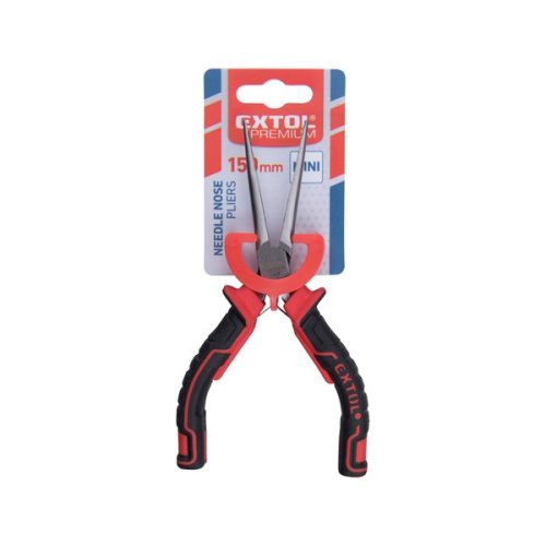 hosszú csőrű fogó, mini; 150 mm, kétszínű műanyag nyél, rugós